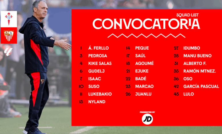 Convocatoria del Sevilla frente al Celta