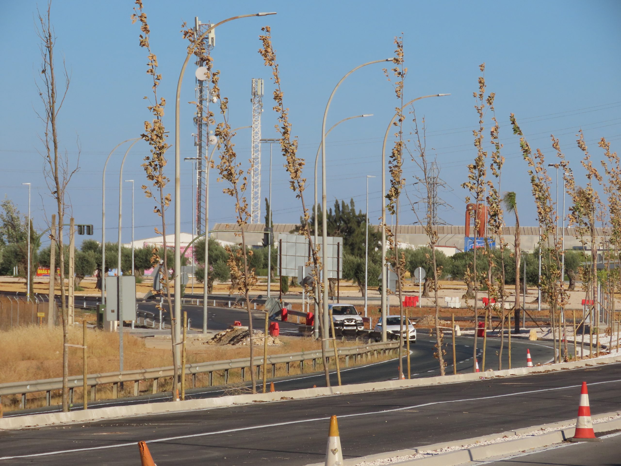 Una buena actuación urbanística (ya anunciada en 2017) donde, además de haberse renovado conducciones de aguas pluviales y escorrentías naturales, se ha dotado a la red de autobuses locales de unos carriles exclusivos que facilitan y agilizan su circulación (otra cosa son los rendimientos de las líneas de autobuses que por allí se mueven), así como de una futura gran avenida arbolada, a medida que se vayan acometiendo los planes de urbanización de los diferentes tramos que quedan, mayoritariamente, en el lateral oeste. Una avenida amplia, la entada a Dos Hermanas desde Cádiz, donde no hay, a priori, restricción de espacio para el desarrollo de grandes copas de árboles y donde sería de esperar que en un futuro cercano estuviera sombreada por ellas, transformándose en un auténtico “bulevar”.
