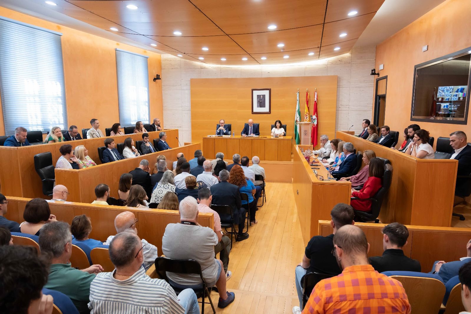 El socialista Francisco Rodríguez ha sido investido como alcalde y ha sido constituida la corporación municipal. El pleno de investidura se ha celebrado en un salón de plenos a rebosar, que ha contado con cientos de nazarenos en el Ayuntamiento, donde se han instalado pantallas en las instalaciones para poder seguir en directo el acto. Los del Río, como hijos predilectos de Dos Hermanas, el comisario de la Policía Nacional, Francisco Javier Vidal y el inspector jefe Luis Villaverde, junto con el ex alcalde, Francisco Toscano y numerosas representaciones de las diferentes asociaciones nazarenas culturales, cofrades, deportivas y comerciales, entre otros, han asistido al evento.