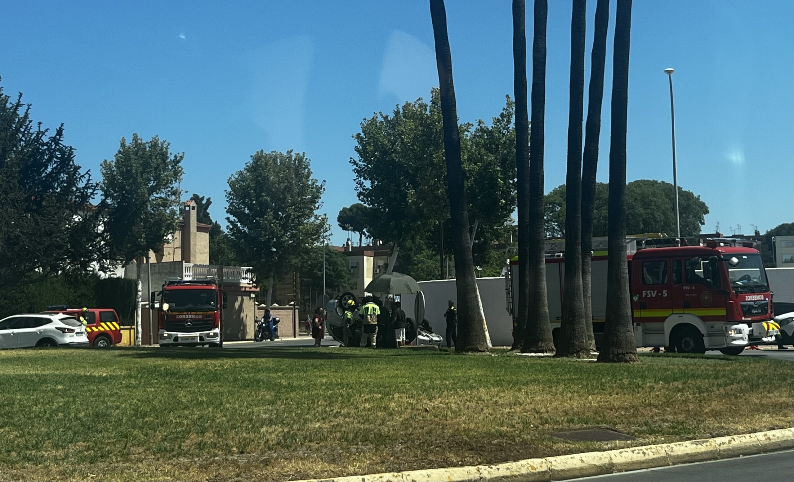 Sobre las 12:30 de este miércoles ha tenido lugar un accidente en la intersección entre la calle Garcilaso De la Vega y Las Cruces. Dando como resultado el vuelco de un turismo en dicha zona y una persona herida.