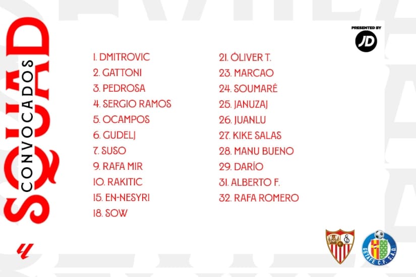 Dmitrovic, Alberto Flores, Rafa Romero, Juanlu, Darío, Gattoni, Sergio Ramos, Marcao, Kike Salas, Pedrosa, Gudelj, Soumaré, Manu Bueno, Sow, Rakitic, Óliver Torres, Januzaj, Ocampos, Suso, Rafa Mir y En-Nesyri.