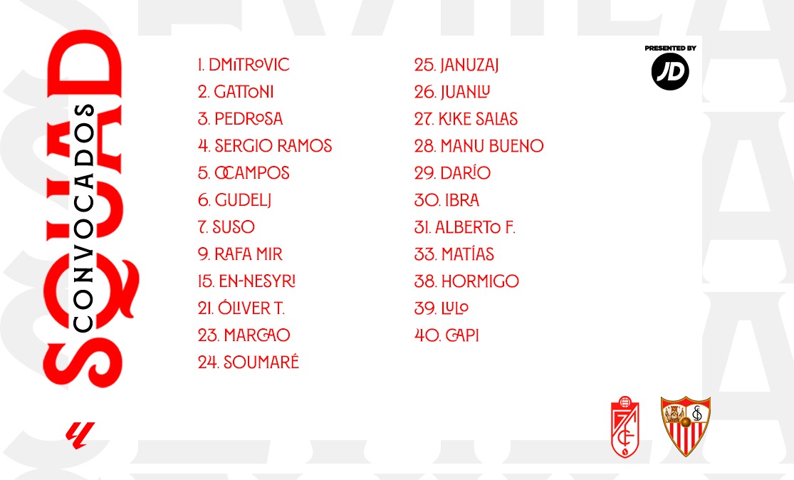Dmitrovic, Alberto Flores, Matías, Juanlu, Darío, Gattoni, Gudelj, Marcao, Ramos, Kike Salas, Hormigo, Pedrosa, Soumaré, Óliver Torres, Manu Bueno, Lulo, Suso, Ocampos, Januzaj, Capi, En-Nesyri, Rafa Mir e Ibra.