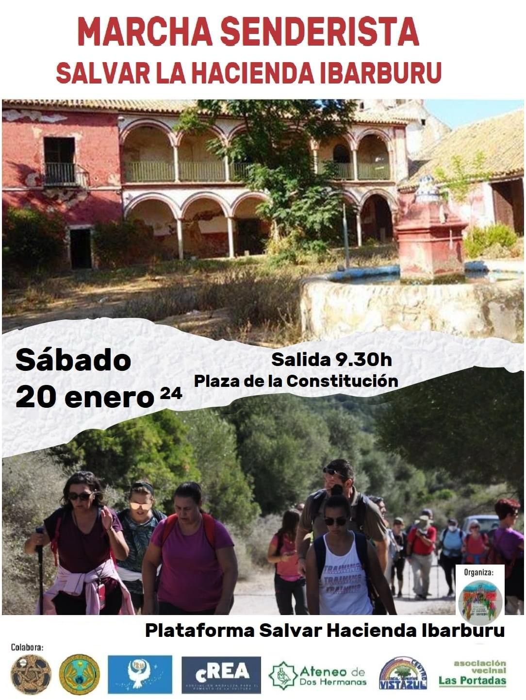 La plataforma “Salvemos la Hacienda de Ibarburu” continúa realizando actividades para la difusión del patrimonio histórico, artístico y cultural de Dos Hermanas y para reivindicar la protección y restauración de la hacienda de Ibarburu. La exposición artística multidisciplinar itinerante se ha celebrado ya en el CSD Vistazul, en la AAVV La Pólvora y en el CEIP Las Portadas y se está gestionando su instalación en varios locales de la provincia.