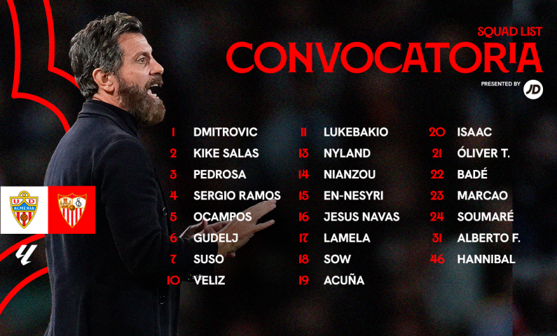Nyland, Dmitrovic, Alberto Flores, Jesús Navas, Sergio Ramos, Badé, Marcao, Nianzou, Kike Salas, Acuña, Pedrosa, Gudelj, Soumaré, Sow, Hannibal, Óliver Torres, Ocampos, Lamela, Lukebakio, Suso, Veliz, En-Nesyri e Isaac.