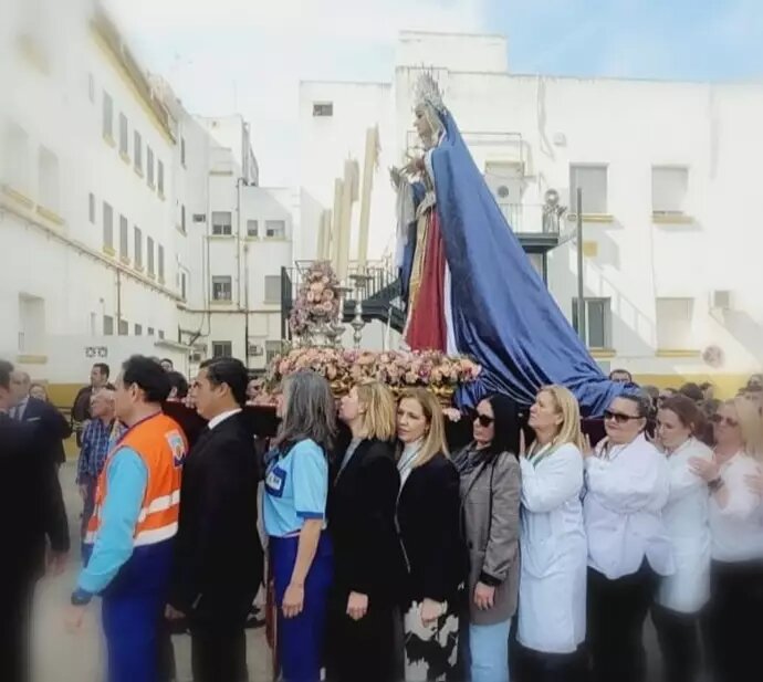 El cortejo ha sido recibido por la directora gerente del Área de Gestión Sanitaria Sur de Sevilla, Rocío del Castillo, junto a diversos responsables de los servicios clínicos y profesionales sanitarios de este centro, quienes han agradecido con una ofrenda floral esta deferencia convertida en una cita anual muy especial por su simbolismo espiritual.