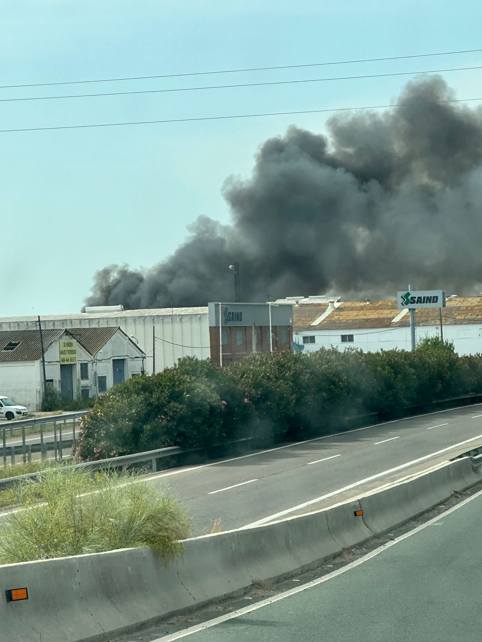 Una nave industrial de ropa usada ubicada en la A-376 ha salido ardiendo en la tarde de este sábado. En el incendio, no ha habido ningún herido ni se han visto afectadas naves colindantes.