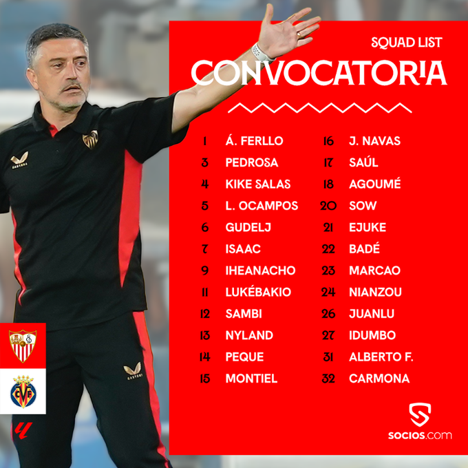 Á. Ferllo, Nyland, Alberto F., Kike Salas, Badé, Marcao, Nianzou, Carmona, Pedrosa, Montiel, J. Navas, Juanlu, Gudelj, Sow, Sambi, Agoumé, Saúl, Ejuke, L. Ocampos, Lukebakio, Idumbo, Peque, Isaac e Iheanacho.