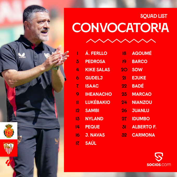Á. Ferllo, Nyland, Alberto F., Kike Salas, Badé, Marcao, Nianzou, Carmona, Pedrosa, J. Navas, Barco, Juanlu, Gudelj, Sow, Sambi, Agoumé, Saúl, Ejuke, Lukebakio, Idumbo, Peque, Isaac e Iheanacho.