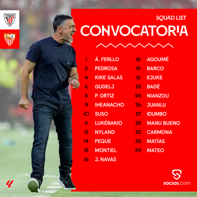 Nyland, Álvaro Ferllo, Matías, Carmona, Montiel, Jesús Navas, Juanlu, Pedrosa, Barco, Badé, Nianzou, Kike Salas, Gudelj, Agoumé, Manu Bueno, Pedro Ortiz, Suso, Peque, Idumbo, Lukebakio, Ejuke, Mateo e Iheanacho.