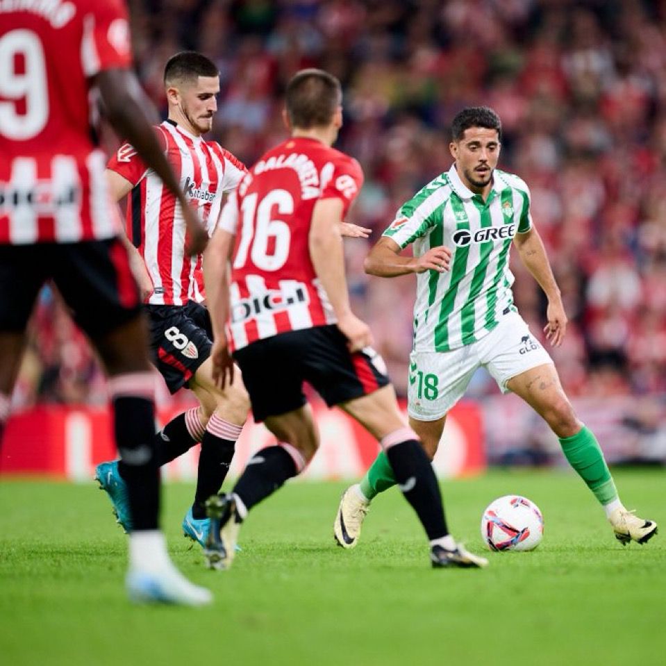 Primeros compases de partido y ambos equipos luchan por hacerse con el control del balón, vemos muchas imprecisiones y una presión adelantada por parte de los pupilos de Manuel Pellegrini sin llegar al punto de asfixia del pasado domingo ante el Atlético de Madrid.Minuto 6 de partido y llega la primera ocasión clara para el Athletic de Bilbao, la tuvo Nico Williams tras una excelente acción individual de Álvaro Djaló.