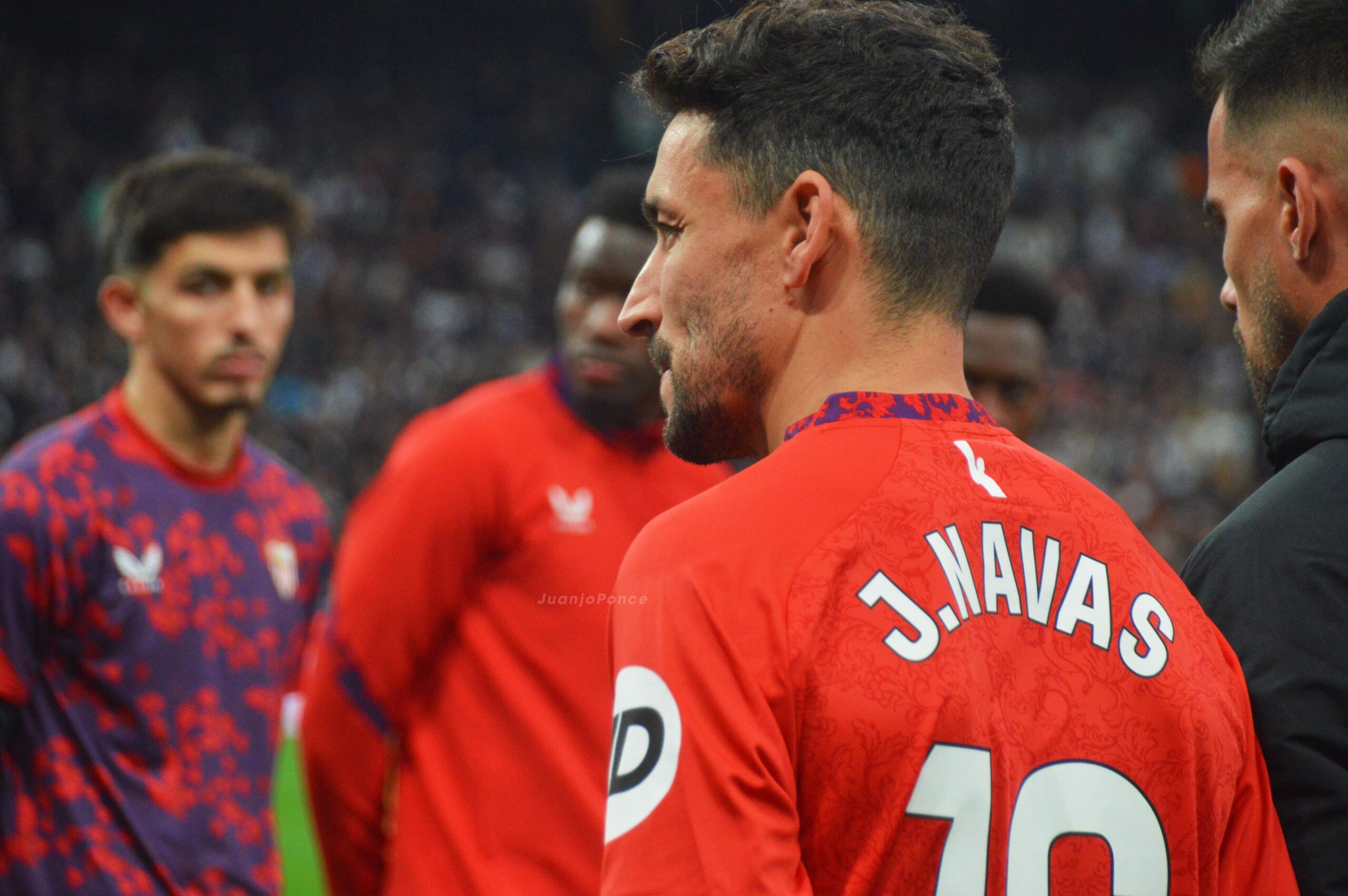 Jesús Navas esperaba en el banquillo su última oportunidad para vestir como jugador del Sevilla FC pero recibía antes del choque un pasillo de ambos conjuntos y un regalo por parte del Real Madrid además de una ovación del Santiago Bernabéu. El Sevilla FC antes hacía el pasillo de campeón a los merengues por la Copa Intercontinental.