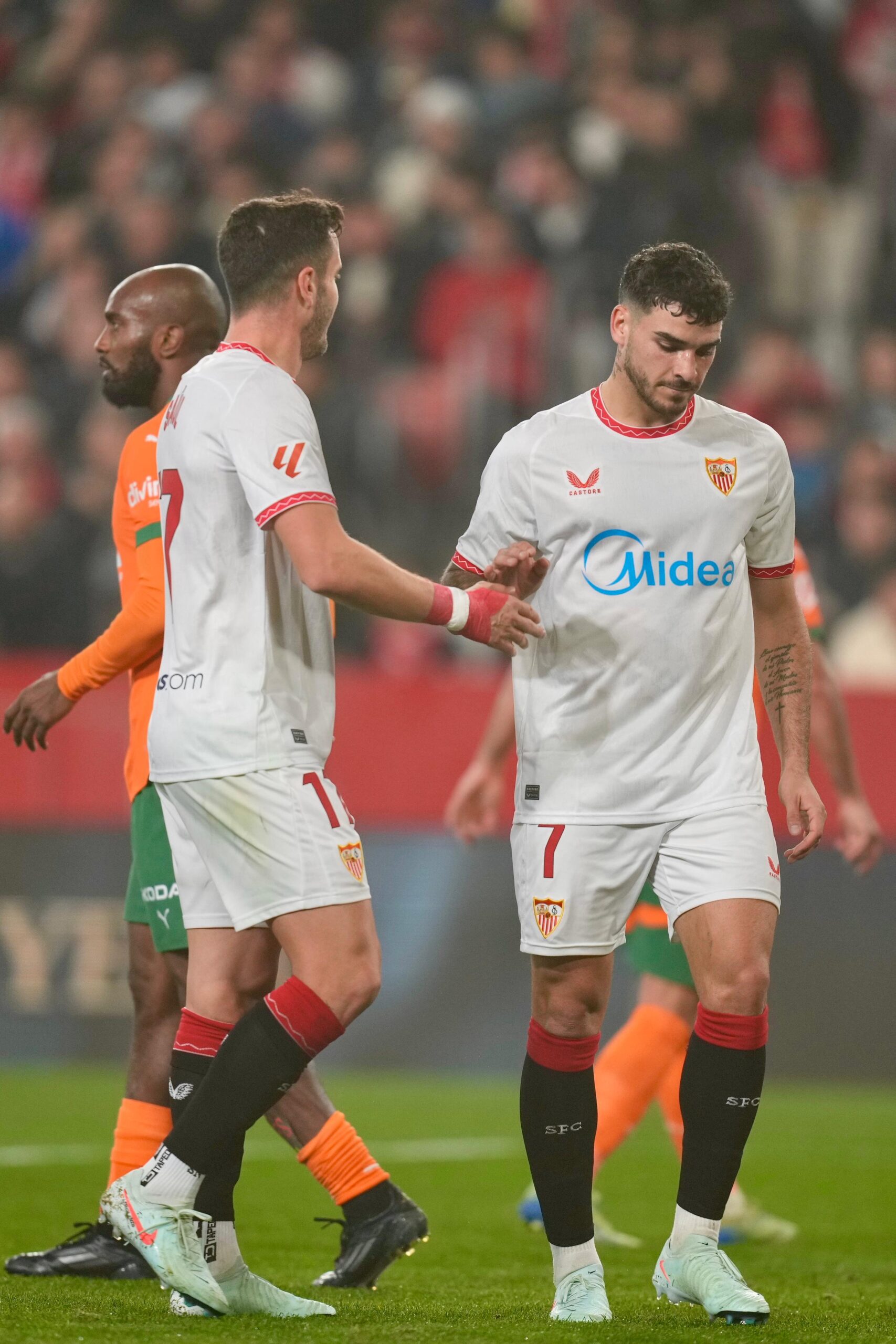 Noche movida en el Ramón Sánchez-Pizjuán tras una semana de movimientos institucionales y la pasada Junta General de Accionistas de ayer viernes. No le quedaba otra al Sevilla FC de García Pimienta que sumar tres puntos ante el colista de la categoría, el Valencia CF del recién estrenado Carlos Corberan, para alejar fantasmas de temporadas pasadas y acercarse a puestos europeos. Con la presencia de Monchi en el estadio y un «tifo» en el Gol Norte del coliseo sevillista todo estaba preparado para vivir uno de los clásicos del fútbol nacional.