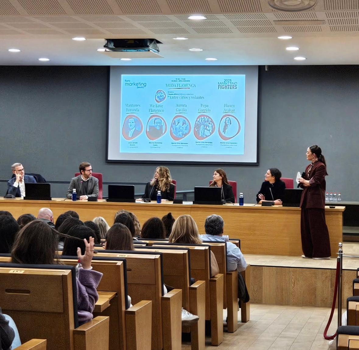 La CEO de Blanco Azahar ha explicado los detalles de la colección y el proceso creativo de los ramilletes que se configuran ex profeso para cada clienta en la Mesa sobre Moda Flamenca de las jornadas que se celebraron en Sevilla, Marketing Fighters Especial Moda. Organizadas por Foro Marketing Sevilla, que preside Rocío Tornay, en la Facultad de Ciencias Económicas y Empresariales de la US, la mesa