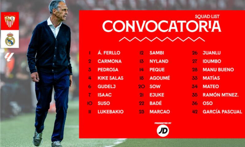 El Sevilla ha dado a conocer la convocatoria de cara al trigésimo séptimo partido oficial de la temporada, este domingo a partir de las 19:00 horas. Esta es la lista correspondiente a la disputa de la trigésima séptima jornada de LaLiga EA Sports 2024-2025