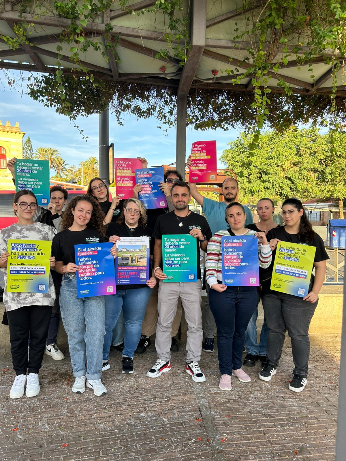 Los carteles destacan que hoy se necesitan 20 años de salario para comprar una vivienda, algo que no ocurría desde 2007. También denuncian que Dos Hermanas carece de un parque público de vivienda con precios asequibles y reclaman crear una empresa municipal, como EMVISESA.