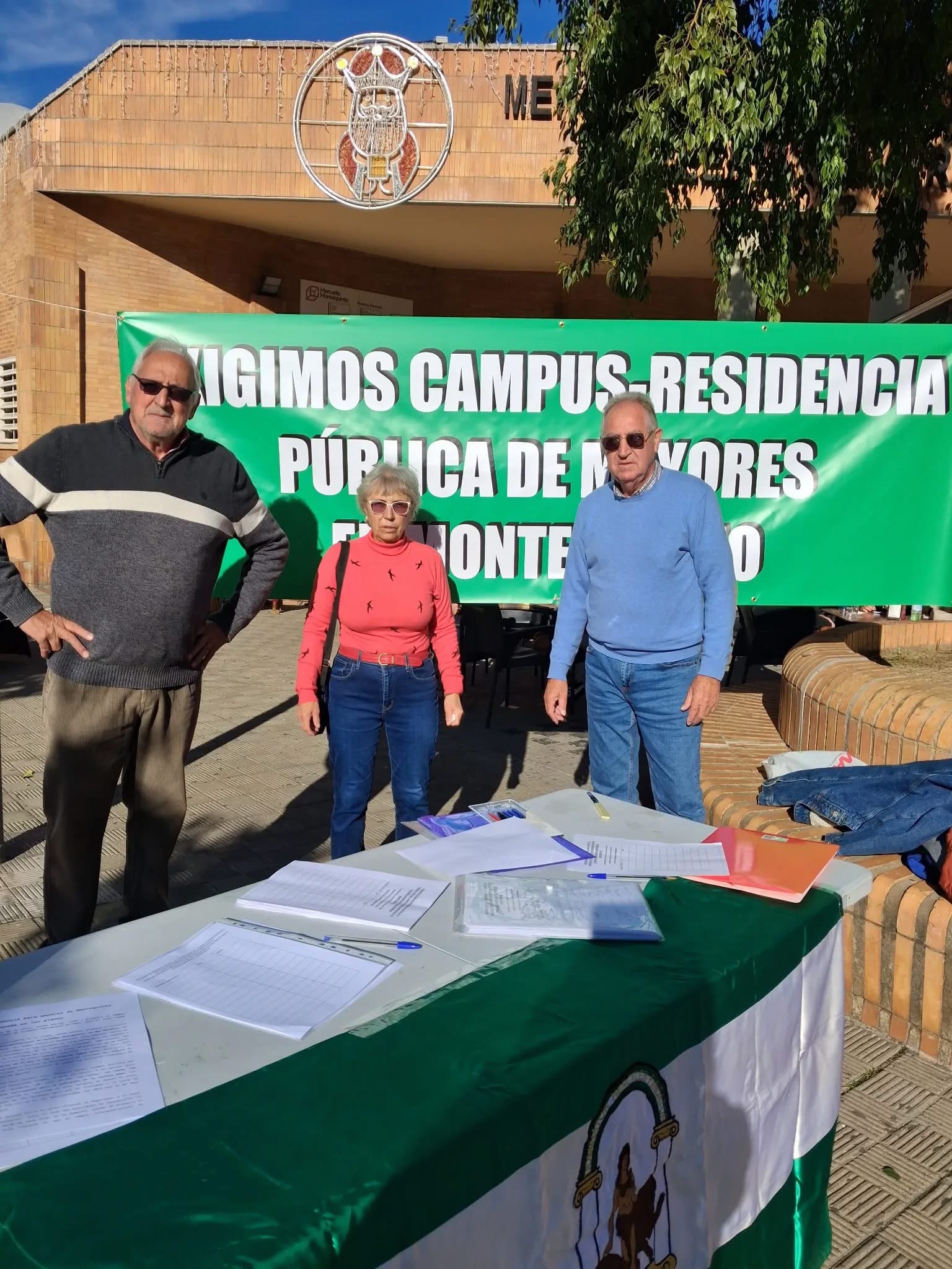 En una mesa informativa instalada frente al edificio municipal de Montequinto, varios integrantes de la plataforma han dedicado la mañana a informar a los vecinos y a recoger firmas en apoyo a esta reivindicación histórica. En el stand, decorado con documentación y hojas de adhesión, explicaron que el proyecto —anunciado públicamente hace ya dos años— continúa sin avances reales, pese a la creciente demanda de recursos públicos para la tercera edad en la zona.