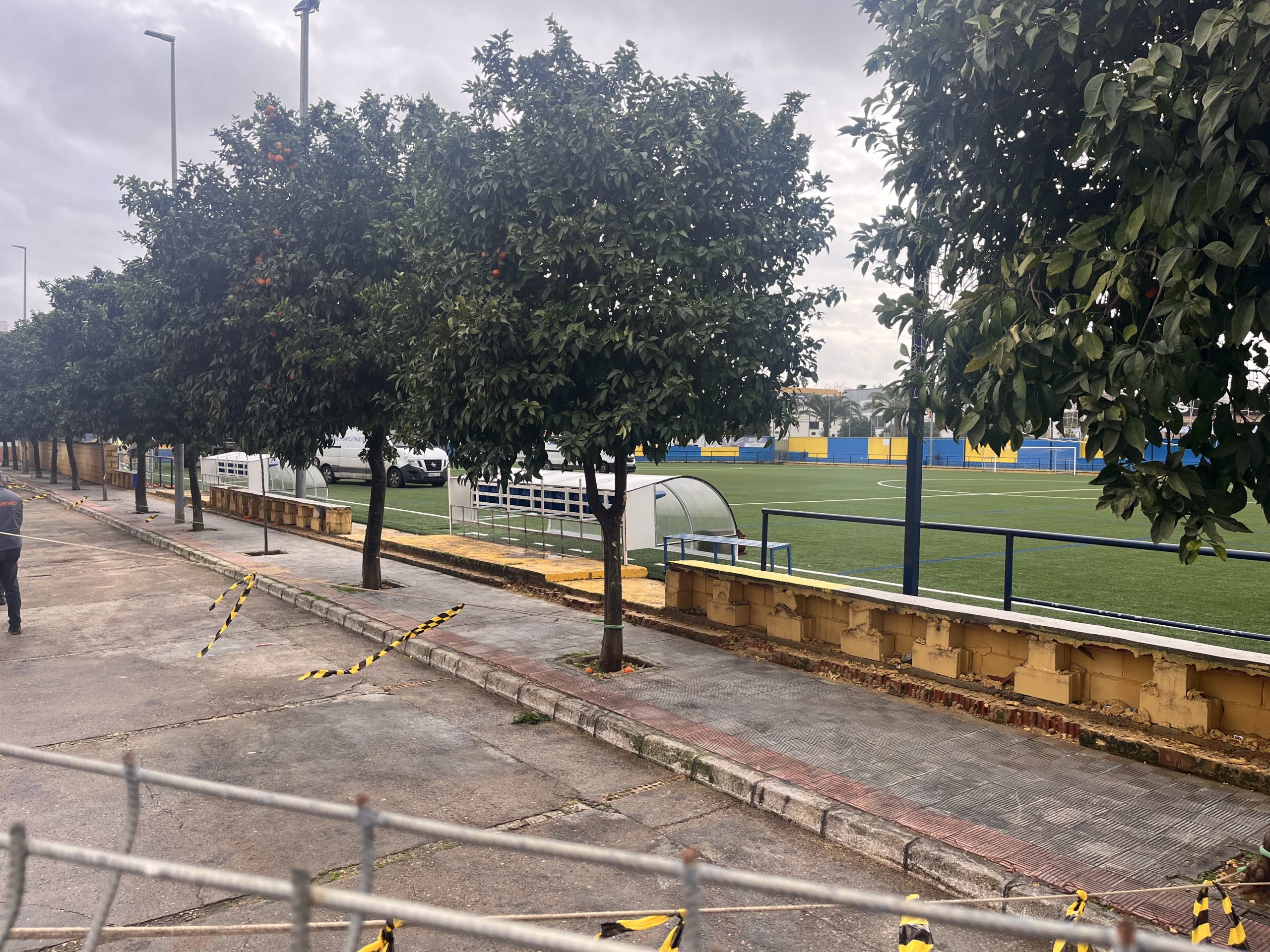 La caída del muro se ha producido en uno de los laterales exteriores del recinto deportivo, junto a la vía pública, como consecuencia de las intensas lluvias y el reblandecimiento del terreno. En la zona afectada se han desplegado cintas de seguridad para evitar el paso de peatones y vehículos, ante el riesgo de nuevos desprendimientos.