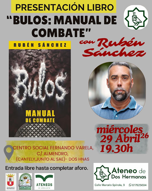 Ateneo de Dos Hermanas te invita el próximo miércoles 29 de abril a las 19:30h a la presentación del libro “Bulos, manual de combate”, una reflexión urgente sobre la desinformación, con la presencia de su autor, Rubén Sánchez, periodista y secretario general de FACUA-Consumidores en Acción.